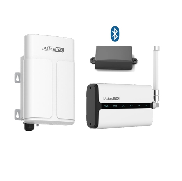 Gateways and beacons create the invisible network that make the wearables work. Gateways connect the Rapid Alert wearables and beacons to the Rapid Alert Wearables Cloud. They use both wired (PoE) and wireless (LoRaWAN, LTE) connections for reliability and can be mounted indoors or outdoors to cover the whole campus. Battery powered beacons help determine where a badge is located on campus.